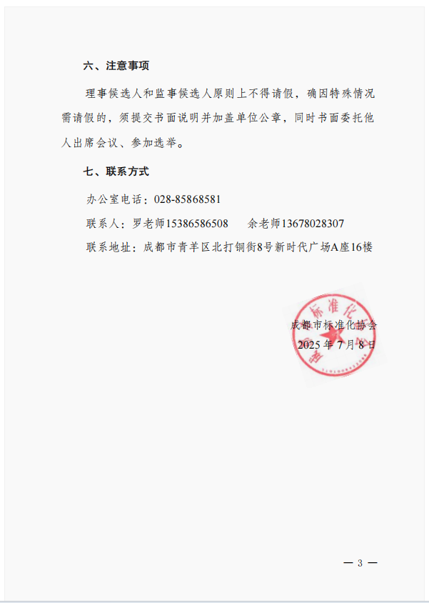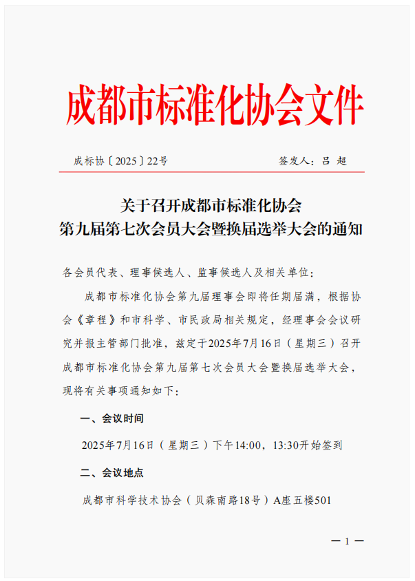 关于召开成都市标准化协会 第九届第七次会员大会暨换届选举大会的通知
