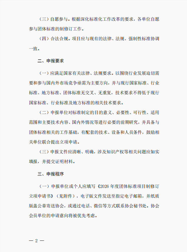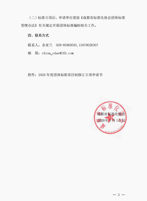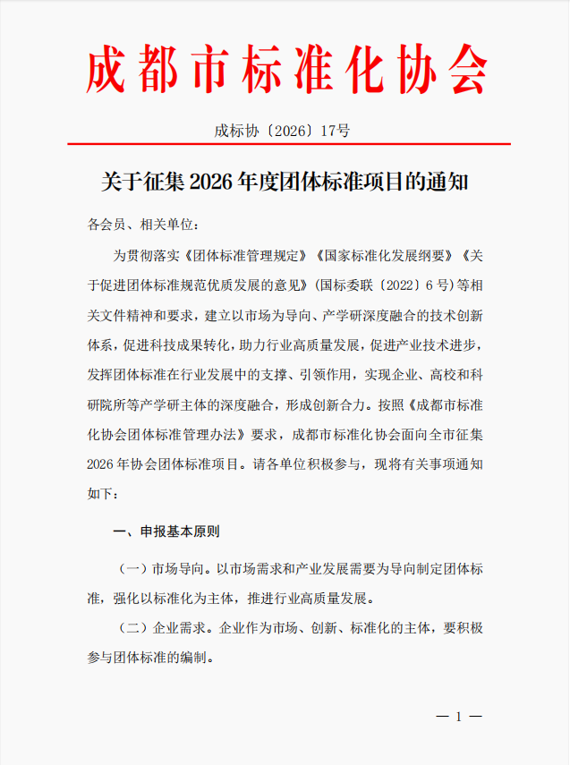 成都市标准化协会关于征集 2026 年度团体标准项目的通知